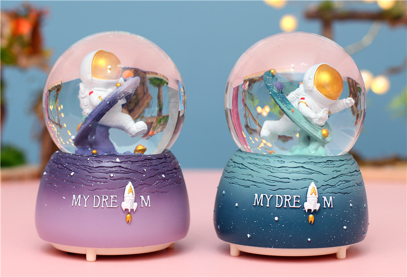 太空宇航员水晶球音乐盒摆件学生八音盒雪花水球礼品生日礼物【B82643】2023星空蓝