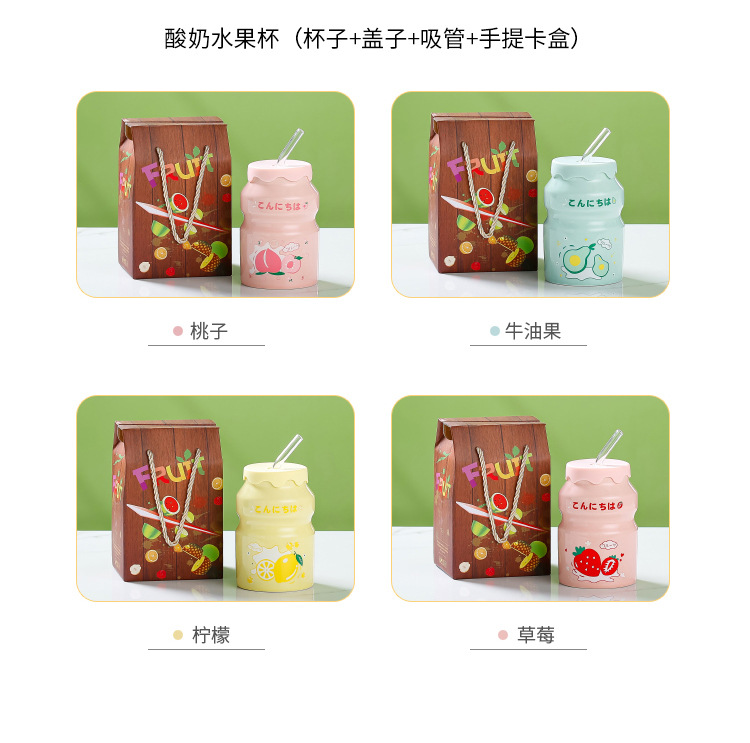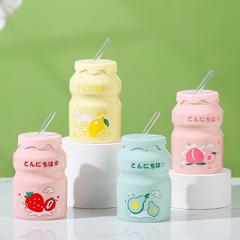 创意日系吸管杯卡通陶瓷杯女生高颜值水杯家用情侣奶瓶杯子【YL1084】