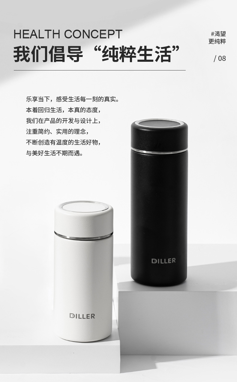 保温杯 简约316不锈钢水杯商务刻字批发水杯茶水分离泡茶杯子 330ml【 MLH9097】