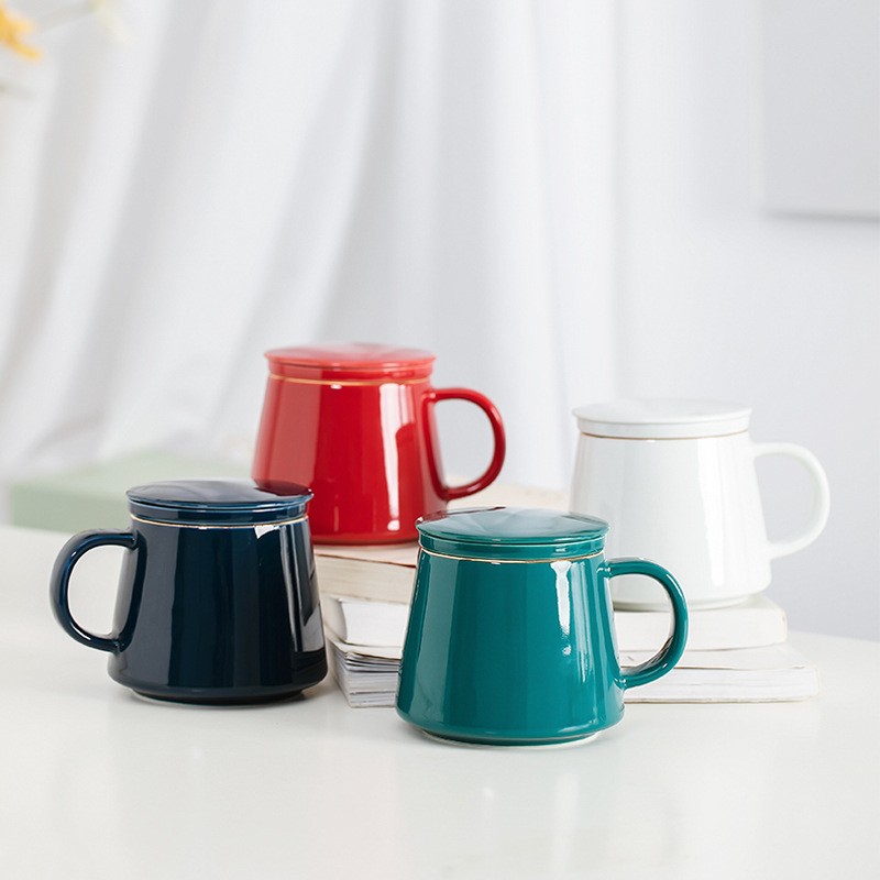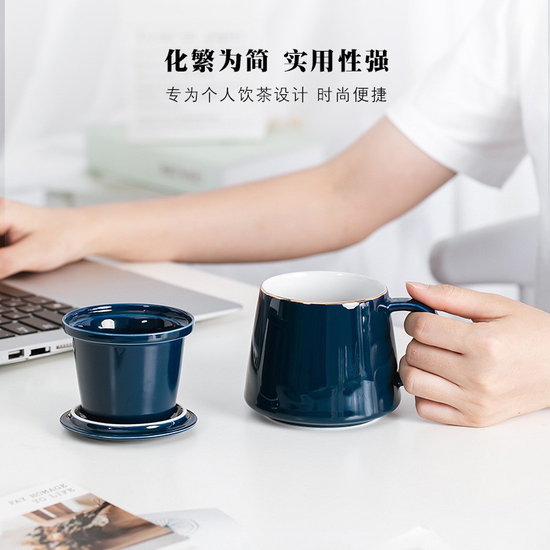 现货陶瓷泡茶杯带盖过滤办公杯茶水分离杯子个人喝花茶杯LOGO礼品【雅致杯瓷把款】 5‘99在