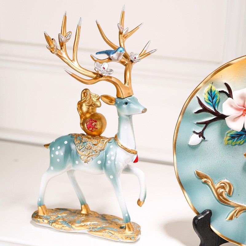 创意鹿摆件入户玄关乔迁新居礼品客厅电视酒柜家居装饰品结婚【KX 681405148291】