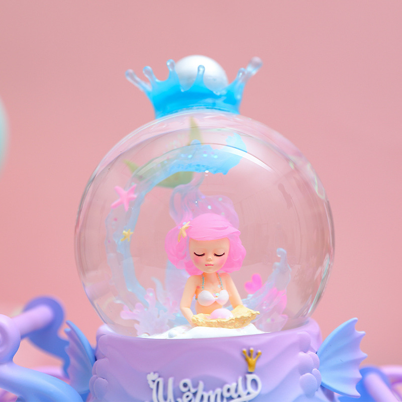 卡通海洋珍珠美人鱼公主飘雪八音盒水晶球马车音乐盒女生小礼品