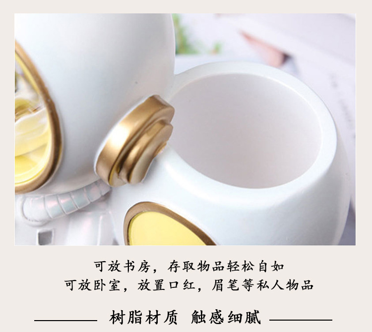 创意节日礼物宇航员带灯笔筒办公桌面笔桶收纳树脂工艺品摆件学生