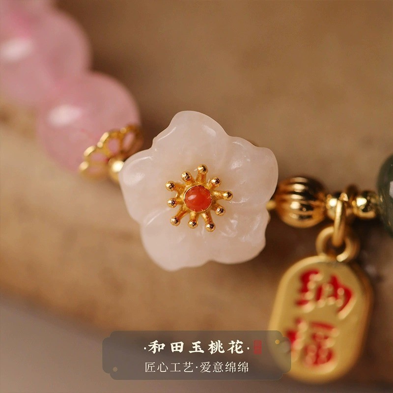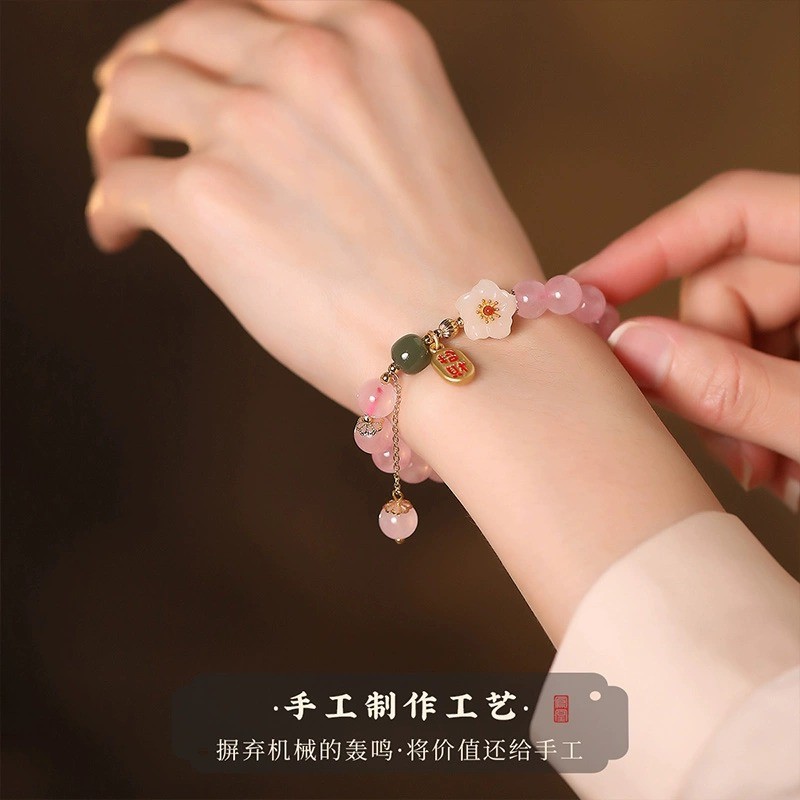 粉水晶手串女款粉色水晶和田玉串珠国风桃花手链闺蜜小众七夕礼物【AL733980127845】
