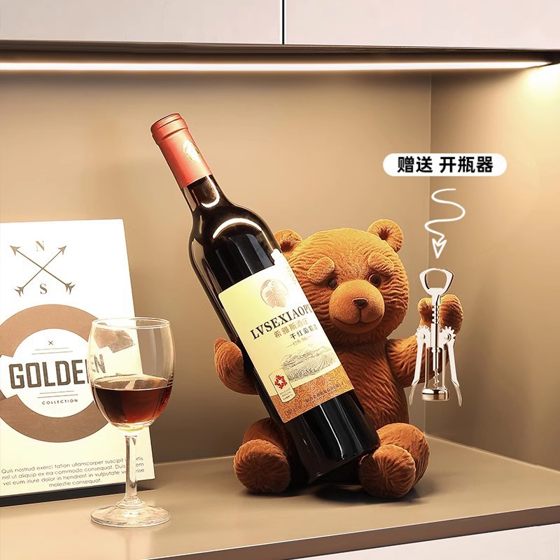 泰迪熊红酒架酒柜摆件现代轻奢高档客厅玄关餐边柜创意家居装饰品