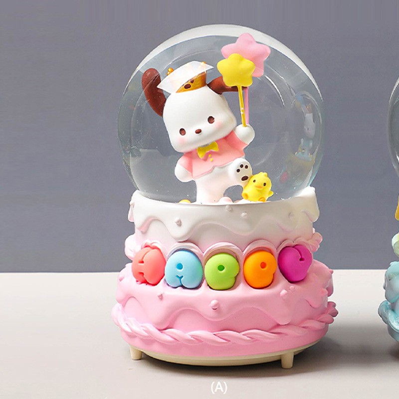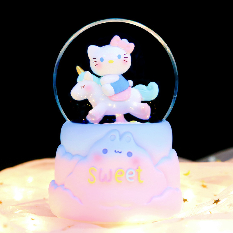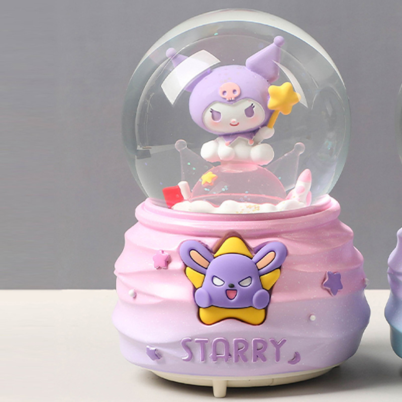 卡通可爱库洛米水晶球摆件飘雪旋转八音盒儿童节日礼物 大号100内转+彩灯飘雪++音乐