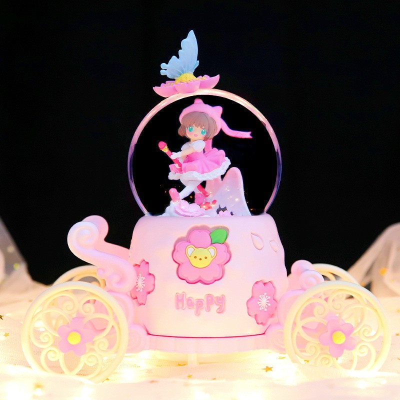 新款樱花仙子水晶球发光发亮旋转八音盒精致礼品 K中号80彩灯+音乐