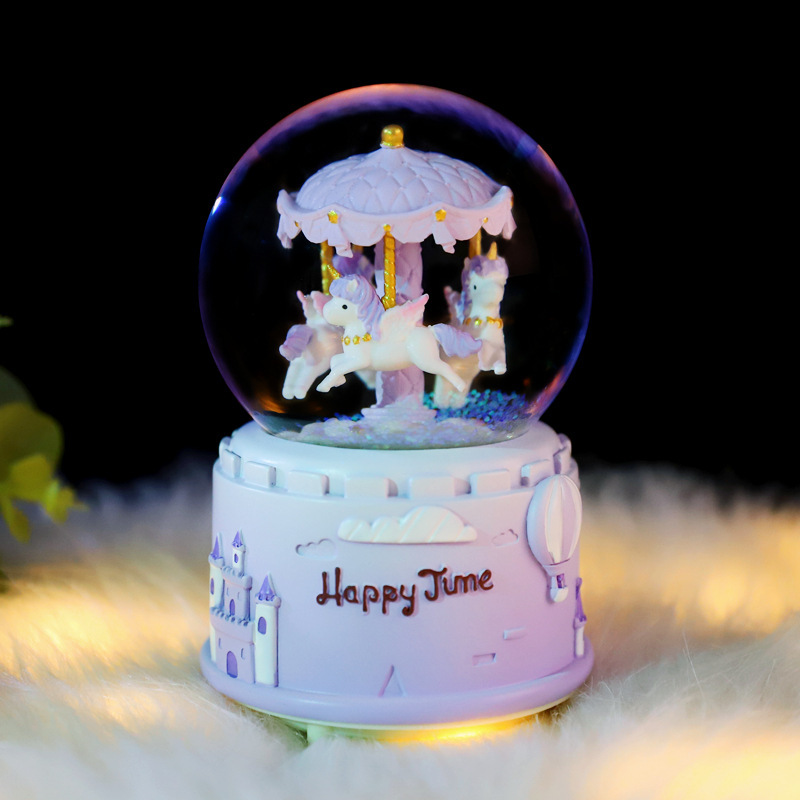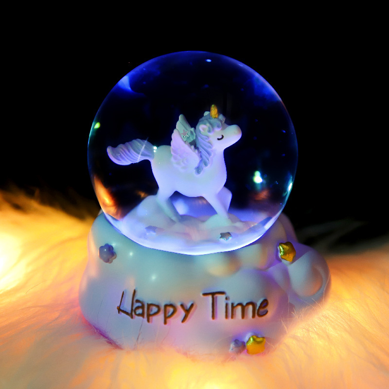 新款梦幻独角兽65#45#水晶球音乐盒彩灯卧室家具柜台照明灯水球javascript:;