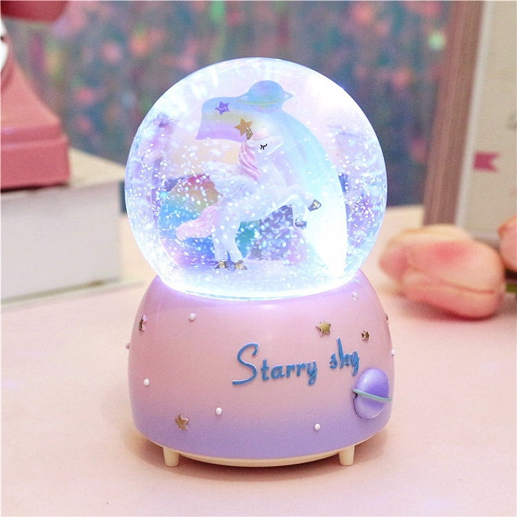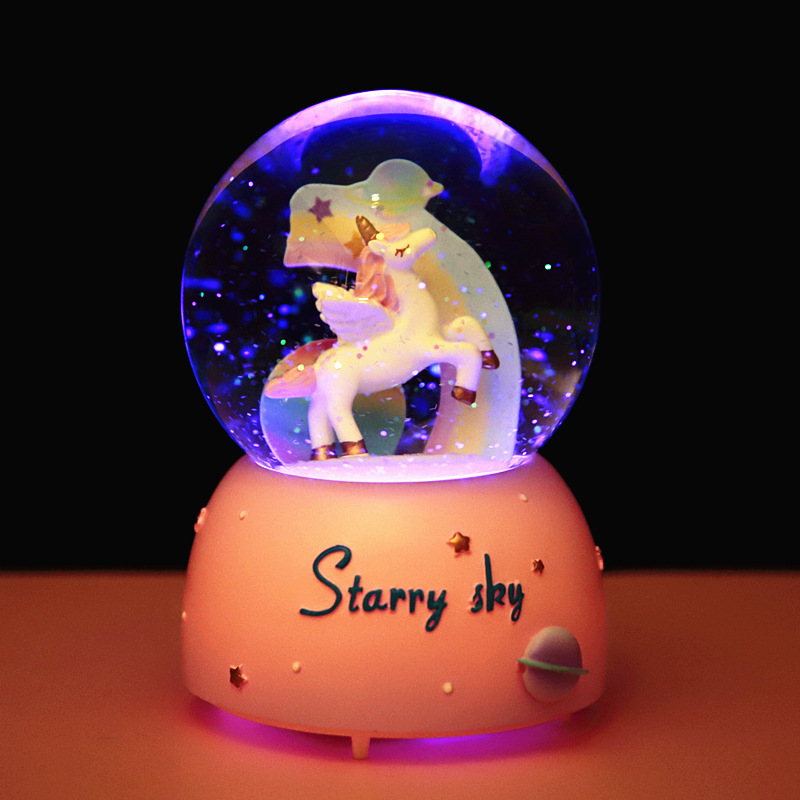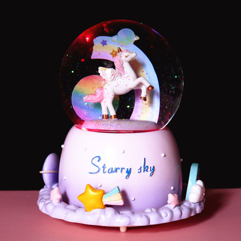 星空独角兽水晶球音乐盒9V008 =9K008带灯中80飞跃粉