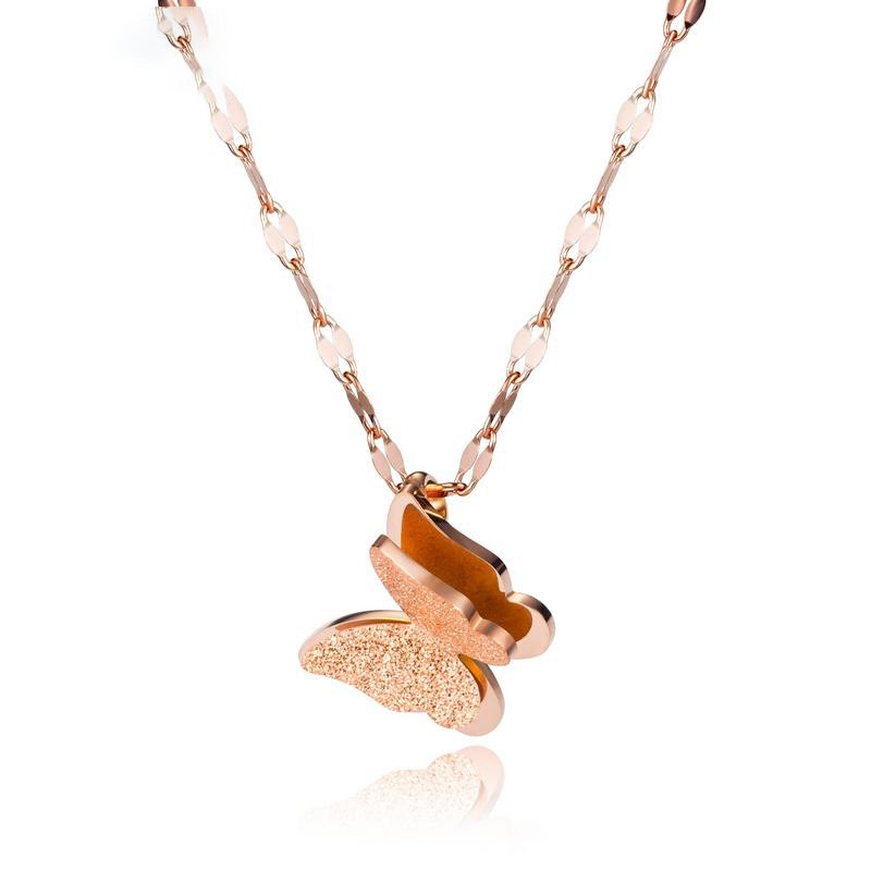 双层磨砂蝴蝶吊坠 玫瑰金色锁骨链女不锈钢项链=1665