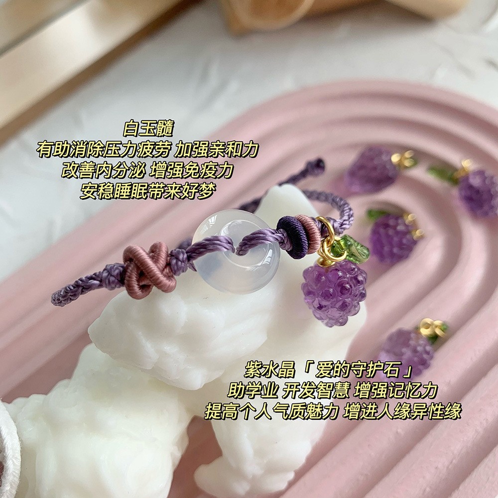 天然紫水晶小葡萄吊坠白玉髓平安扣手绳手链礼物AL-650585845245