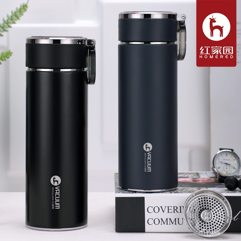 红家园办公室号高真空商务杯304内外红家园带锁扣纯色礼品【HO-680】