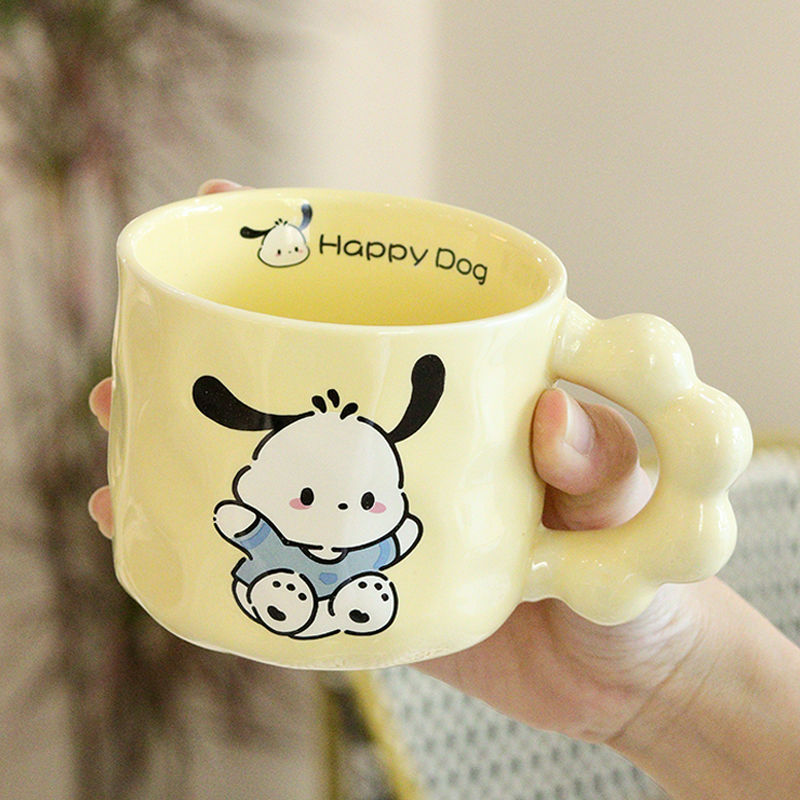 可爱卡通陶瓷杯高颜值兔熊狗狗马克杯带盖勺个性情侣喝水杯早餐杯【QJ017】