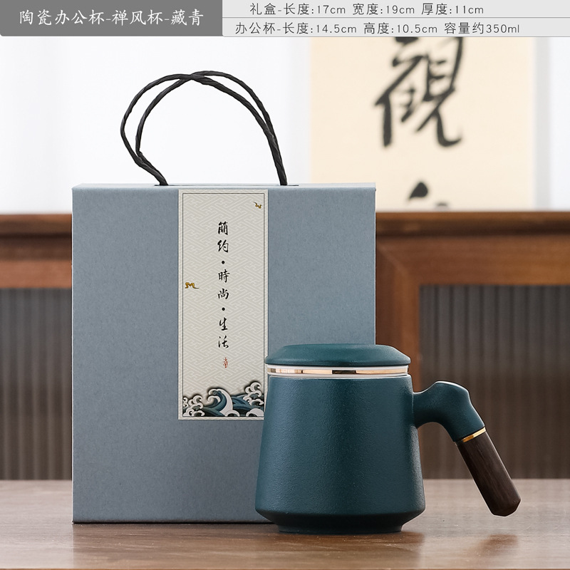 陶瓷办公水杯三件套马克杯茶水分离个人泡茶杯商务送礼【231】【2022.5.17-16】