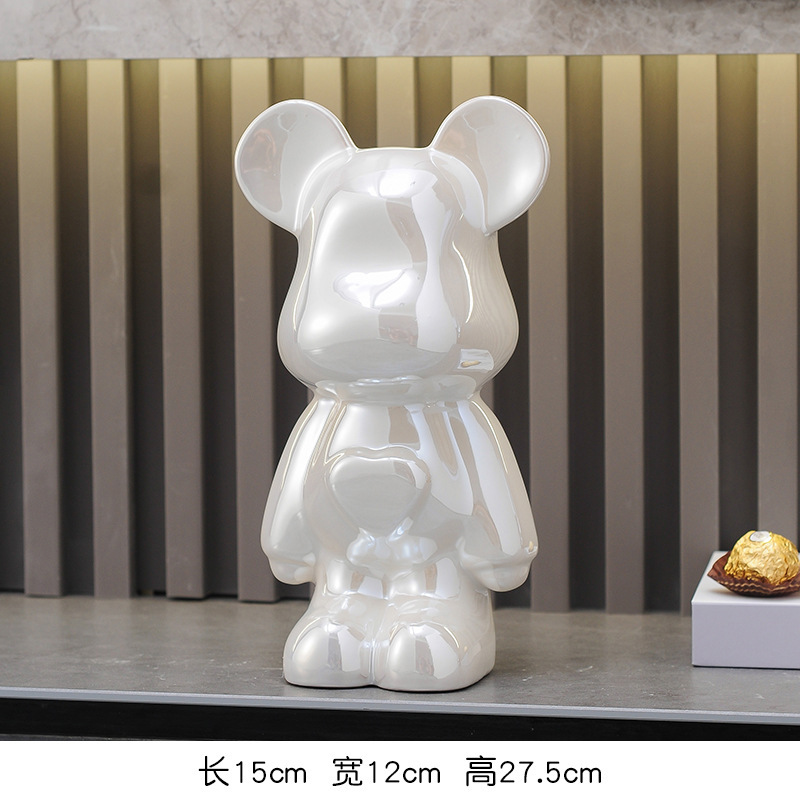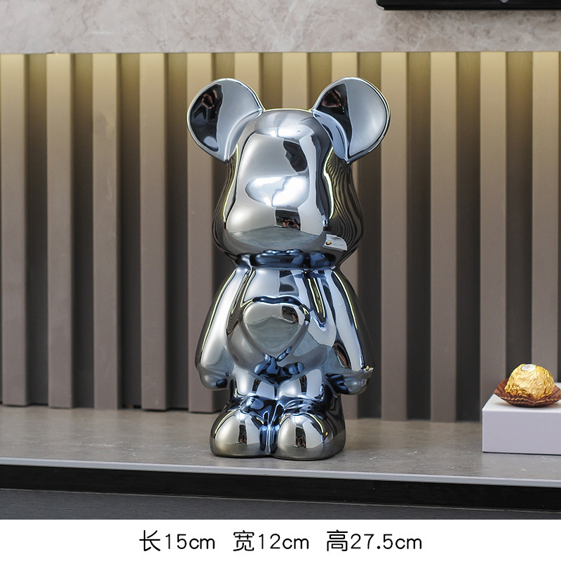 暴力熊陶瓷卡通公仔电镀家居摆件客厅电视柜网红装饰品存钱罐创意 送搬家乔迁 【BLX】卡通爱心熊27cm