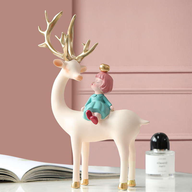 麋鹿女孩创意摆件轻奢玄关收纳客厅电视酒柜家居饰品乔迁新居礼品