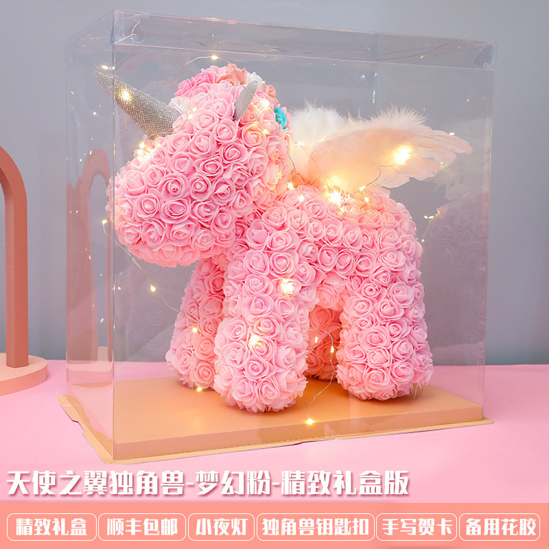 玫瑰花独角兽永生花玫瑰花熊礼物520七夕情人节礼物
