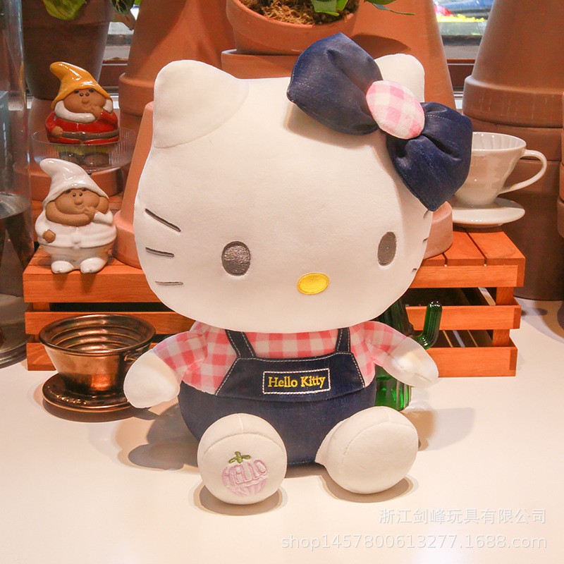正版三丽鸥hellokitty公仔凯蒂猫玩偶毛绒玩具活动礼品kt猫娃娃 kt牛仔裤9寸约23cm