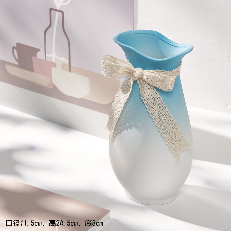 北欧蓝色渐变白色陶瓷干花花瓶民宿客厅插花玄关装饰摆件摆设
