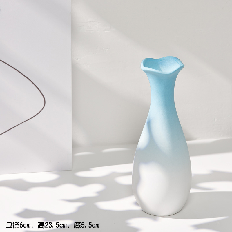 蜀门蓝色渐变北欧简约陶瓷干花花瓶水养创意客厅家居装饰插花摆件