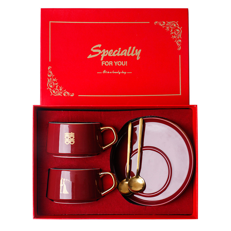 欢喜陶瓷杯礼盒装结婚伴手礼马克杯对杯爱心咖啡杯喜庆情侣囍杯子【欢喜对杯】