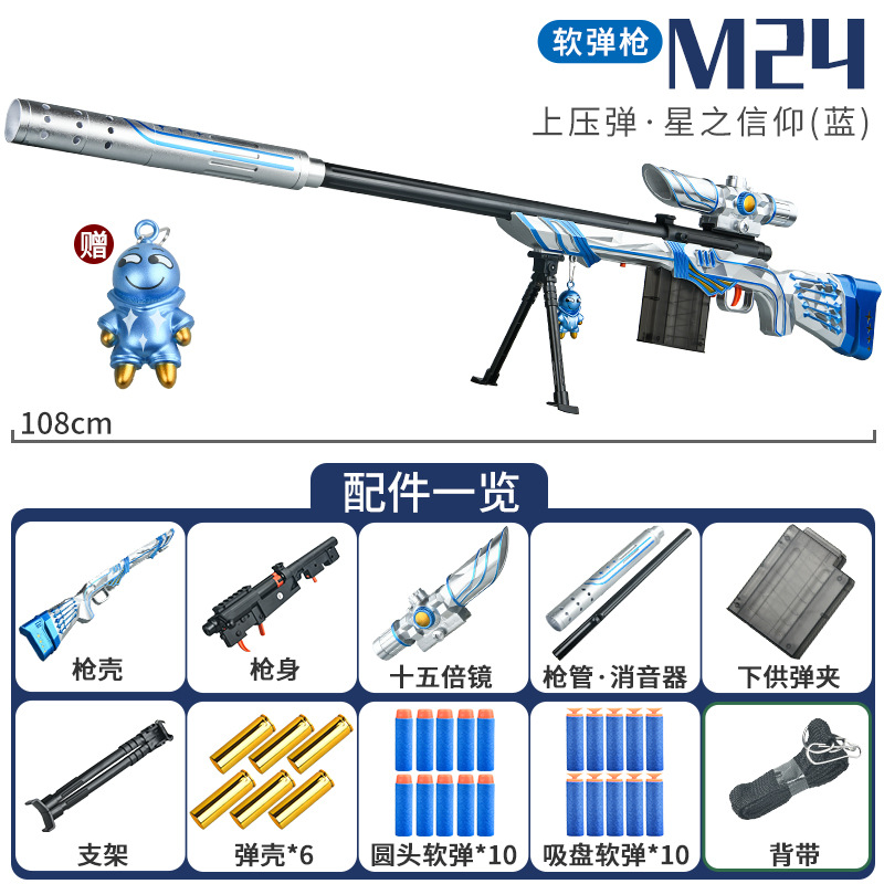 洛臣AWM抛壳狙击大号软弹玩具枪男孩车仿真98K儿童手动吃鸡全装备【LC61】