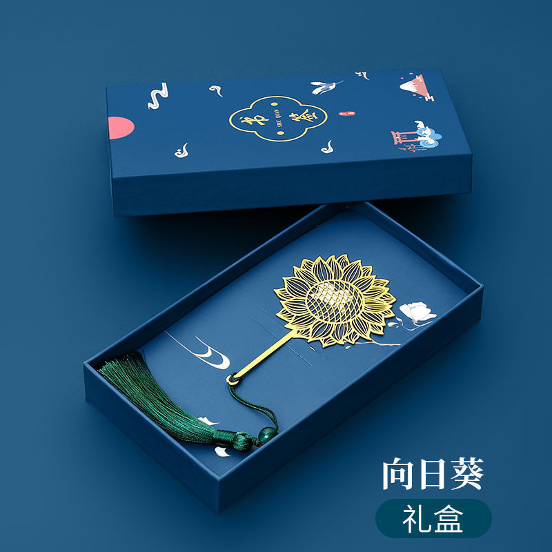 古风书签金属古典中国风黄铜团扇金莲花学生用文艺毕业教师节