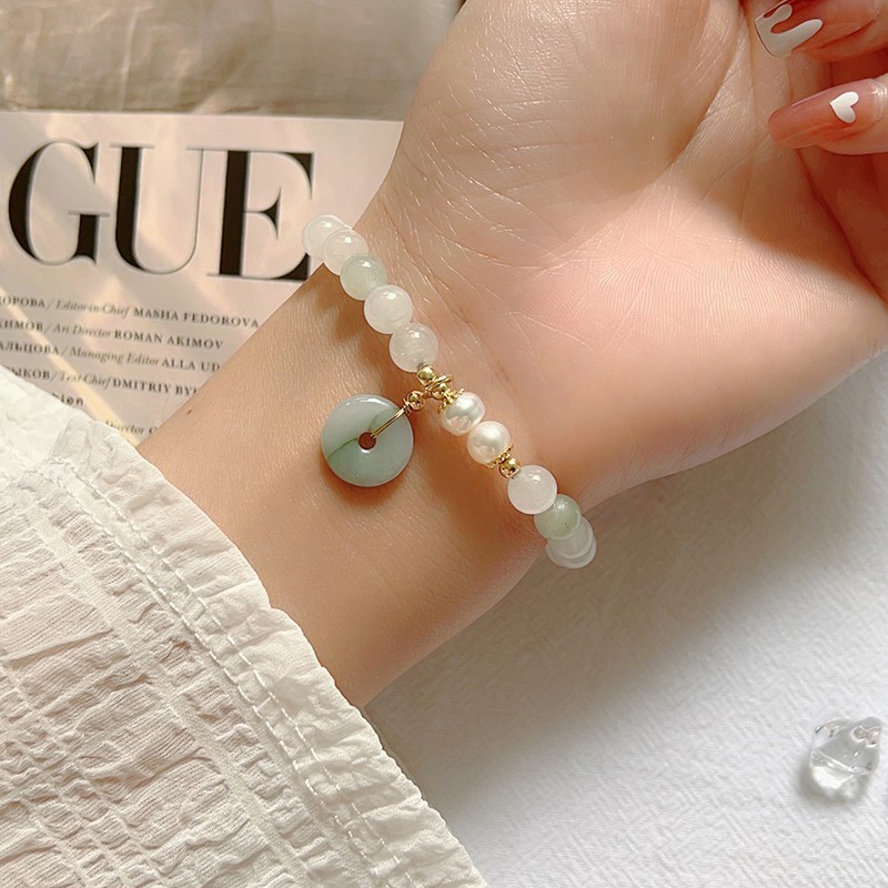天然新疆玉天山翠手链女平安扣四叶草爱心串珠手串闺蜜手饰品【手链MN807-811】