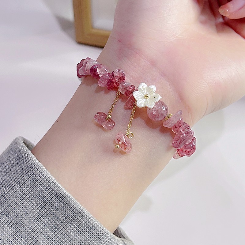 韩版草莓晶花朵手链女ins小清新天然石水晶串珠手串学生闺蜜手饰【手链MN724】