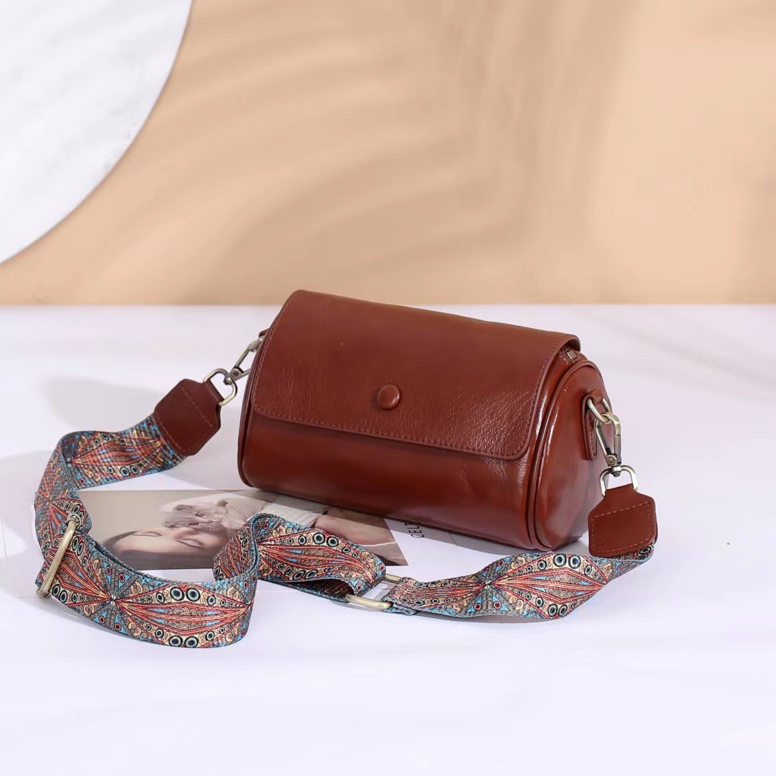 真皮包2023新款秋季宽肩带头层牛皮植鞣皮单肩斜挎女包圆筒包潮【RY9250】