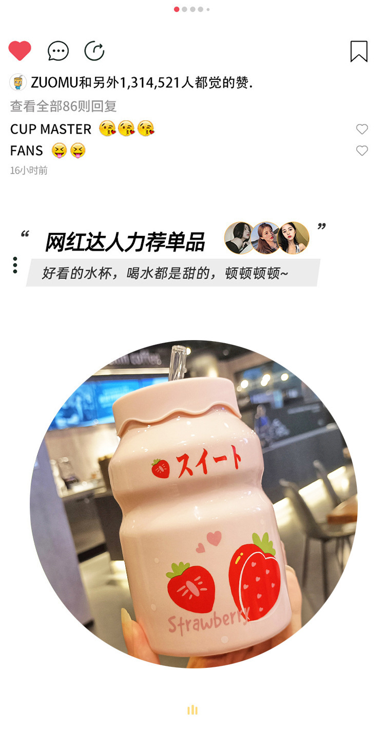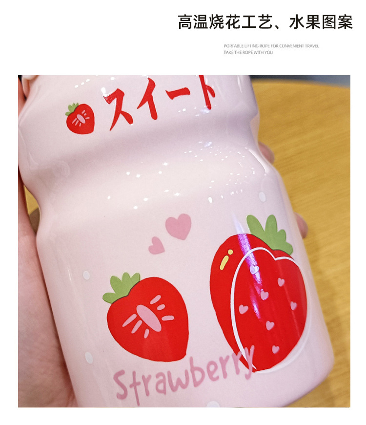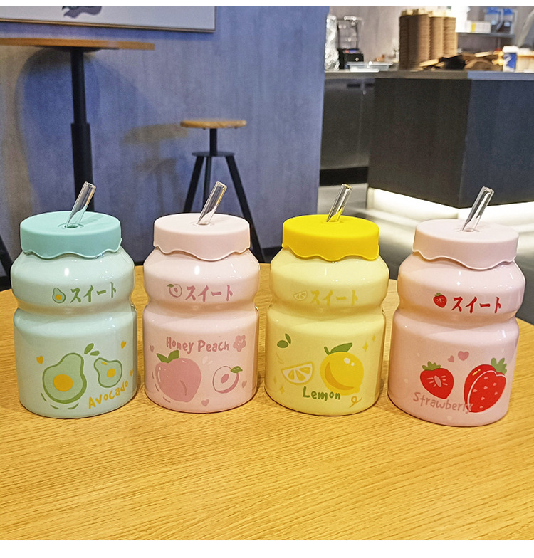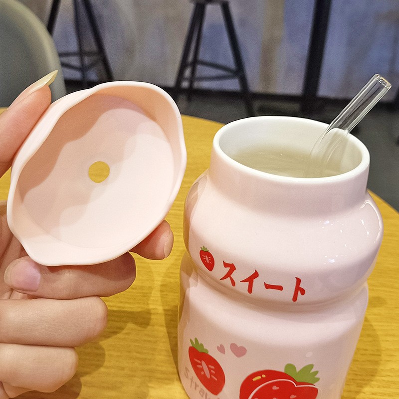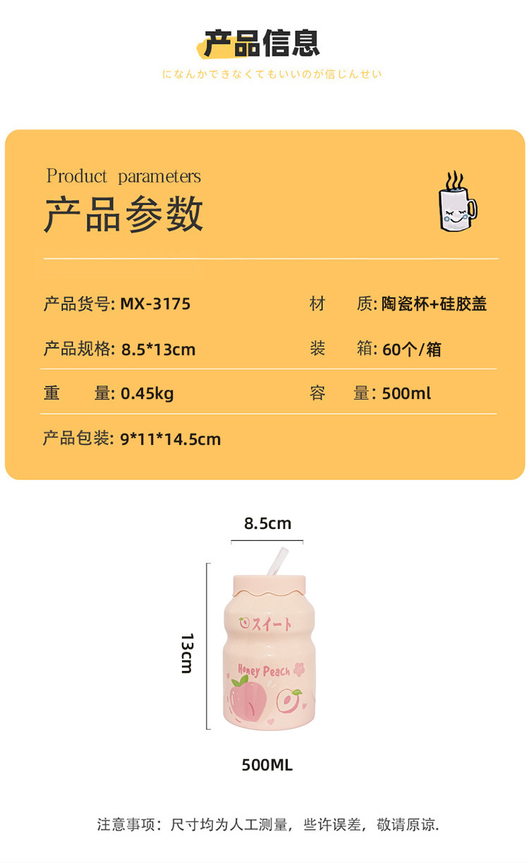 卡通水果陶瓷杯带吸管办公室高颜值水杯情侣马克杯女学生礼品杯子【 MX-3175】